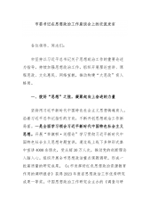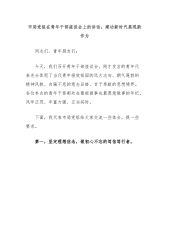 市局党组在青年干部座谈会上的讲话:建功新时代展现新作为同志们、青年朋友们:今天,我们召开青年干部座谈会。刚才发言的青年代表充分体现了当代青年报效祖国的远大志向、朝气蓬勃的精神风貌、自强不息的意志品格、甘于奉献的思想境界。各位参会的青年干部都处在最能做事也最愿意做事的年纪,风华正茂、年富力强、正当其时。下面,我代表市局党组给大家交流一些体会,提一些要求。第一,坚定理想信念,做初心不忘的笃信笃行者。青年干部要始终做到纯粹的、无条件的对党忠诚,深刻领悟“两个确立”的决定性意义,坚决做到“两个维护”。不断提高政治站位,善于从大局上看问题、做工作,培养“身在兵位、胸为帅谋”的意识。在学习科学理论、体会新...