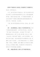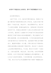 在青年干部座谈会上的交流发言:年轻干部要心有所戒行有所止各位领导,同事们:大家上午好!按照会议安排,下面,我围绕“年轻干部要心有所戒行有所止”这一主题,结合工作生活实际,与大家分享一些体会,不当之处请批评指正。第一,年轻干部要始终做到心中有戒,抵得住“贪”的诱惑。千里之堤,毁于蚁穴。落马者都是从失小节、存小过、犯小错开始,从量变到质变,一步步滑向罪恶深渊自毁前程。要抵得住“贪”的诱惑。牢记清廉是福、贪欲是祸的道理,经常对照党的理论和路线方针政策、对照党章党规党纪、对照初心使命,认真思考自己的行为是否符合规范和道德,从而在面对各种诱惑和挑战时能够做出正确的决策和行动。要牢固树立正确的权力观事业观...