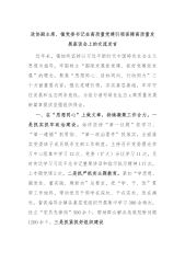 政协副主席、镇党委书记在高质量党建引领保障高质量发展座谈会上的交流发言近年来,镇始终坚持以习近平新时代中国特色社会主义思想为指导,牢固树立“围绕发展抓党建、抓好党建促发展”的理念,聚焦“思想同心、目标同向、行动同力”三个方面重要内容,强化党建引领,夯实基层基础,牢牢守住发展和生态两条底线,为奋力谱写绿色生态x高质量发展新篇章提供坚强组织保证。一、在“思想同心”上做文章,持续凝聚工作合力。一是抓实抓牢政治建设。始终坚持“第一议题”抓学习、“第一遵循”抓贯彻、“第一政治要件”抓落实,全面落实党委班子成员联系支部工作制度,主持召开党委理论学习中心组集中学习12次、党委(扩大)会议学习11次,及时传达...