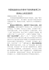 年轻干部在纪委监委机关青年干部座谈会上的发言材料汇编(7篇)1.时光不负奋斗青春不负梦想...............................................22.青年纪检干部如何担“风霜之任”........................................63.青年干部要用好“加减乘除法”........................................104.青年干部要做“四种人”.......................................................145.青年干部如何立功、立德、立言.........
