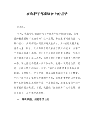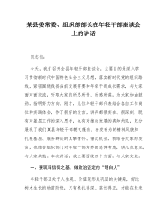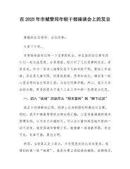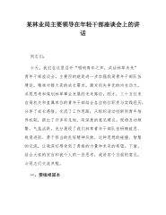 某林业局主要领导在年轻干部座谈会上的讲话同志们:今天,我们在这里召开“唱响青年之声,共话林草未来”青年干部座谈会,主要目的就是进一步加强我局青年干部队伍建设,精准对接大家的成长需求,激发创先争优的内生动力,共同思考和谋划林草事业发展的未来路径。刚才,三十五位来自局机关和直属单位的青年干部结合各自岗位职责与实践经历,分享了成长感悟,交流了工作思路,从组织活动创新到青年培养机制,提出了许多有见地、有深度的意见建议。现场互动频繁,气氛活跃,充分展现了我们林草青年干部队伍研精致思、锐意进取、勇于担当的良好精神风貌。这种思想的碰撞、智慧的交流,让我深切感受到了青春的力量和未来的希望。下面,结合大家的发言...