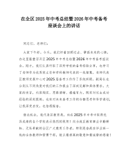 在全区2025年中考总结暨2026年中考备考座谈会上的讲话同志们、老师们:大家下午好。今天,我们怀着回顾过去、擘画未来的心情,在这里隆重召开区2025年中考总结暨2026年中考备考座谈会。刚才,我们认真听取了四所学校的备考经验分享,也学习了老师作为优秀班主任和学科教师代表的一线智慧,老师代表区教师发展中心对2025届备考工作作了系统回顾,副局长也分别从不同角度对我们的工作提出了深刻见解和具体要求。大家的发言,内容翔实、思路清晰、措施有力,既有对过去成功经验的深刻提炼,也有对未来备考工作的冷静思考和科学谋划,让我深受启发,也倍感振奋。借此机会,我代表区教育局,向在2025年中考中取得优异成绩的各...
