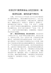 在干部培训座谈会上的交流发言:选育管用并重,打造忠诚干净担当的高素质干部队伍同志们:大家上午好,按照会议安排,结合工作学习实际,现就干部培训工作体会交流如下,不当之处请批评指正:习近平总书记指出“实现中华民族伟大复兴,坚持和发展中国特色社会主义,关键在党,关键在人”,强调“建设一支堪当民族复兴重任的高素质干部队伍”,对新时代干部队伍建设工作提出了明确要求,也提供了根本遵循和行动指南。我们要深思践悟,一丝不苟抓好贯彻落实,坚持选育管用并重,打造忠诚干净担当的高素质干部队伍,为强国建设、民族复兴提供坚定的干部支撑。要以健全制度为第一保障,坚决夯实干部队伍建设之基。完备的干部选育管用制度体系是建设忠...