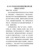 关于学习习近平总书记在进一步推动长江经济带高质量发展座谈会上重要讲话发言提纲 长江是中华民族的母亲河,也是中华民族发展的重要支撑。近日,习近平总书记在江西省南昌市主持召开进一步推动长江经济带高质量发展座谈会并发表重要讲话,对进一步推动长江经济带高质量发展作出了重大部署、提出了明确要求,为长江未来发展擘画出美好蓝图。习近平总书记的重要讲话高屋建瓴、总揽全局,思想深邃、内涵丰富,通篇贯穿XXX生态文明思想,为推动长江经济带发展提供了科学指引。根据会议安排,下面我结合工作实际,谈三点学习体会。 一、提高思想认识,增强贯彻落实的自觉性和坚定性推动长江经济带发展是以XXX同志为核心的党中央作出的重大...