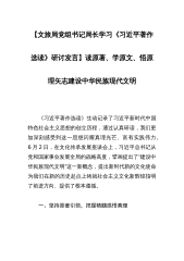 【文旅局党组书记局长学习《习近平著作选读》研讨发言】读原著、学原文、悟原理矢志建设中华民族现代文明《习近平著作选读》生动记录了习近平新时代中国特色社会主义思想的创立历程,通过认真研读,我们更加深刻感受到这一思想闪耀真理光芒、富有实践伟力。6月2日,在文化传承发展座谈会上,习近平总书记从党和国家事业发展全局的战略高度,擘画提出了“建设中华民族现代文明”这一新概念,提出新时代新的文化使命为我们在新的历史起点上铸就社会主义文化新辉煌指明了前进方向、提供了根本遵循。一、坚持原著引领,把握精髓感悟真理一是从政治高度来理解。习近平总书记深刻阐述中华优秀传统文化的历史渊源、发展脉络、思想精华、鲜明特质,明确...