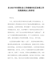 在2025年市委社会工作部城市社区治理工作交流座谈会上的讲话