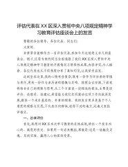 评估代表在XX区深入贯彻中央精神学习教育评估座谈会上的发言_1