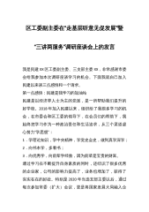 区工委副主委在“走基层听意见促发展”暨“三讲两服务”调研座谈会上的发言