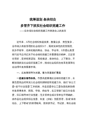 统筹谋划 条块结合多管齐下抓实社会组织党建工作在全省社会组织党建工作座谈会上的发言
