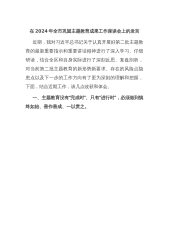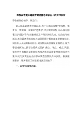 医院在市委主题教育调研督导座谈会上的汇报发言尊敬的各位领导,同志们:第二批主题教育开展以来,市中心医院围绕“学思想、强党性、重实践、建新功”总要求,结合医院实际,精心谋划部署,以问题为导向,积极研究工作落实的切入点、结合点与创新点,将主题教育的过程与成果同医疗服务改革举措相结合,同医务人员的期盼相结合,同医院的高质量发展相结合,致力于找准解决人民群众看病就医的“痛点、堵点、难点”问题,努力把主题教育成果转化为推进医院高质量发展的强大力量,转化为实实在在办好群众满意医院的具体实践。根据座谈要求,现将有关工作进展情况汇报如下:一、以学铸魂强忠诚。医院党委坚持把理论学习贯穿主题教育始终,将“学思想”...