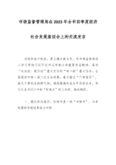 市场监督管理局在2023年全市四季度经济社会发展座谈会上的交流发言
