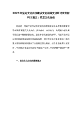 2023年坚定文化自信建设文化强国交流研讨发言材料2篇文:坚定文化自信