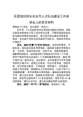 区委组织部长在全市人才队伍建设工作座谈会上的发言材料