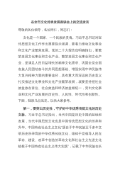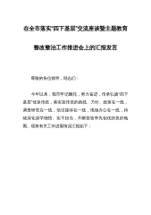在全市落实“四下基层”交流座谈暨主题教育整改整治工作推进会上的汇报发言 尊敬的各位领导,同志们: 今年以来,我市牢记嘱托,努力奋进,传承弘扬“四下基层”优良传统,落实宣传党的路线、方针、政策在一线,调查研究在一线,信访接待在一线,现场办公在一线,持续深化深学细悟、实干担当,不断营造争先创优的良好氛围。现将有关工作进展情况汇报如下: 宣传宣讲“聚共识”。坚持思想教育、理论武装打头,组织各级领导干部深入基层开展党的二十大精神、习近平新时代中国特色社会主义思想宣讲,以党内教育引导带动全社会学习,推动党的创新理论“飞入寻常百姓家”。积极探索活动主体和创新载体,充分发挥领导干部示范引领作用,依托“...