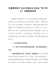 2025年乡镇领导班子含典型事例剖析“五个带头”对照检查发言材料与乡镇(街道)围绕“四个带头”主题领导班子检视问题整改方案2篇文2025年乡镇领导班子含典型事例剖析民主生活会“五个带头”对照检查发言材料根据《关于开好2024年度党员领导干部民主生活会的通知》要求,党委班子深入学习领会相关精神,开展谈心谈话,征求各方意见,围绕4个方面查摆问题,剖析根源,明确整改措施与方向,现报告班子对照查摆情况。一、存在的主要问题(一)带头严守政治纪律和政治规矩,维护党的团结统一方面。一是理论学习深度不足。虽然乡镇领导班子一直积极组织政治理论学习,但在学习深度上存在欠缺。例如,在学习党的二十大精神和习近平新时代...