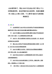 企业领导班子、国企2025年生活会(四个带头)个人对照检查材料、谈话详细对话记录材料、检查问题清单10篇word例文【附:个人事项+违纪行为典型案例剖析】