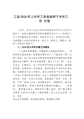 工会2024年上半年工作总结和下半年工作计划上半年,区总工会在区委的坚强领导和市总工会的有力指导下,坚持以重要领导思想和重要领导关于工人阶级和工会工作的重要论述为指导,聚焦主责主业、坚持改革创新,全面增强工会组织的感知力、响应力、影响力、凝聚力,现将工作情况汇报如下:一、2024年上半年主要工作情况(一)强化思政建设,不断提升工会组织引领力。一是抓好抓实基层党建。持续推进理论学习,严格落实“第一议题”制度,深入学习领会和贯彻落实重要领导重要讲话和重要指示批示精神、党中央决策部署。落实“三会一课”、民主生活会、主题党日、谈心谈话等党内组织生活制度,做到提前部署、统筹协调、系统推进。推进全面从严治...