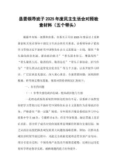 市中医院班子2025年带头严守政治纪律和政治规矩方面等“四个带头”领导班子对照检查材料6140字范文按照市卫健委和市委组织部关于开好2024年度民主生活会的通知要求,市中医院领导班子高度重视,认真学习贯彻习近平新时代中国特色社会主义思想,深入学习党的二十大和二十届二中、三中全会精神,认真研读新修订的《中国共产党纪律处分条例》,广泛征求意见建议,深入开展谈心谈话,认真撰写对照检查材料。现将有关情况报告如下:一、上年度民主生活会整改落实情况按照上级部署要求,医院党委班子对2023年度民主生活会查摆出的问题,高度重视,狠抓整改落实。一是强化组织领导。成立整改工作领导小组,制定整改工作方案,对查摆出的...