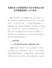 县委社会工作部领导班子2025年度民主SH会对照检查材料(五个带头)
