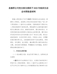 XX支队党支部2025年度组织生活会班子对照检查材料(精品)根据市局党委和机关党委关于召开2025年度基层党组织组织生活会的统一部署,XX支队党支部班子紧紧围绕会议主题,在深入开展学习研讨、广泛征求意见建议、普遍进行谈心谈话的基础上,聚焦“学习贯彻中央八项规定精神、铸牢中华民族共同体意识、加强理论武装、执行上级组织决定、严格组织生活、加强党员管理监督、警惕形式主义、做好群众工作、抓好自身建设”等九个方面,深入学习领会党的二十届四中全会精神,紧密联系支部班子思想和工作实际,深刻查摆了存在的突出问题,深入剖析了问题产生的根源,并明确了今后的努力方向和整改措施。现将对照检查情况报告如下:一、存在的主...