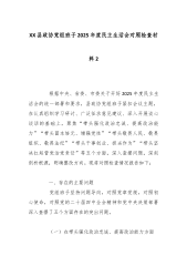 XX区委常委班子2025年度民主生活会对照检查材料(带案例)根据上级党委关于召开2025年度民主生活会的统一部署,XX区委常委班子紧扣会议主题,在会前扎实开展准备工作。班子成员通过集中学习与个人自学相结合的方式,深入学习了习近平新时代中国特色社会主义思想、党的二十届三中、四中全会精神及习近平总书记系列重要讲话精神,累计组织集中学习研讨8次。同时,广泛征求各级党组织和干部群众意见建议210余条,班子成员之间、与分管单位负责同志、与本人组织关系所在党支部党员代表之间深入开展谈心谈话150余人次,为开好本次民主生活会奠定了坚实的思想和工作基础。一、存在的主要问题区委常委班子严格对照“带头强化政治忠诚...
