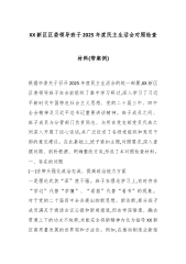 XX街道党工委子2025年度民主生活会班子对照检查材料(带案例)