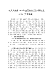 XX市人大常委会机关2025年度民主生活会个人对照检查材料(五个带头)