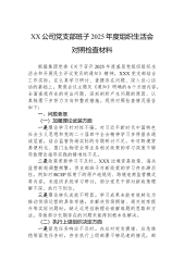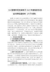 XX管理所党支部班子2025年度组织生活会对照检查材料(六个对照)按照《中共泰兴市水务局党组关于召开2025年度基层党组织组织生活会和开展民主评议党员的通知》要求,XX管理所党支部紧紧围绕“深入学习贯彻习近平新时代中国特色社会主义思想,全面贯彻落实党的二十届四中全会精神,以打攻坚战、持久战的决心和恒心,锲而不舍落实中央八项规定精神,推进作风建设常态化长效化”这一主题,认真组织开展会前学习、广泛征求意见、深入谈心谈话,对照加强理论武装、执行上级组织决定、严格组织生活、加强党员管理监督、做好群众工作、抓好自身建设等6个方面,深入查摆问题、剖析原因、明确整改方向。现将有关情况报告如下。一、存在的主要...