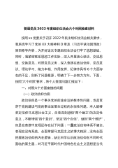 支部书记2022年度组织生活会个人对照检查材料根据2022年度组织生活会主题和要求,对照习近平总书记的号召要求和对甘肃重要讲话重要指示批示精神,对照省第十四次党代会、市第五次党代会作出的各项部署要求,对照党员义务3个方面,结合谈心谈话征求到的意见建议,我认真梳理了自身存在的问题和不足,现将对照检查情况汇报如下,请各位党员同志批评指正。—、存在的问题和不足(一)在政治信仰方面。认真对照反思,存在三个“有待加强”的问题。一是政治判断力有待加强。对“两个确立的决定性意义理解得不够全面精准,科学把握形势变化、精准识别现象本质、清醒明辨行为是非、有效抵御风险挑战的能力还需提高,见微知著的敏锐性、居安思危...