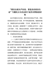 民主生活会班子成员对照检查:“落实全面从严治党,营造良好政治生态”专题民主生活会班子成员对照检查材料