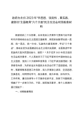 政府办主任2023年“学思想、强党性,重实践、建新功”主题教育“六个方面”民主生活会对照检查材料(包括:理论学习、政治素质、能力本领、担当作为、工作作风、廉洁自律等方面)