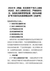 2024年{两篇}党支部班子“执行上级组织决定、执行上级组织决定、严格组织生活、加强党员教育管理监督、抓好自身建设”等方面存在的原因整改材料【供参考】