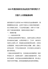 2022年民主组织生活会对照检查材料(全文6036字)按照党委关于召开年民主组织生活会相关要求,我系统学习了党的二十大精神、《习近平谈治国理政》第四卷等内容,为开好这次专题民主生活会打牢了思想基础。同时,我紧密联系思想工作实际,深入开展谈心谈话、交流思想、交换意见,对照个方面,深入查找了自身存在的不足,剖析了问题根源,明确了下步努力方向。现对照检查如下。一、查摆的问题(一)在带头深刻领悟“两个确立”的决定性意义,增强“四个意识”、坚定“四个自信”、做到“两个维护”方面一是关于做到“两个维护”,存在“做”的非常坚决,但“到”的质量、效果有时不特别理想的问题。比如,在落实习近平总书记一些重要讲话精...