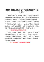 20XX年度民主生活会班子对照检查提纲(全文6186字)