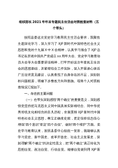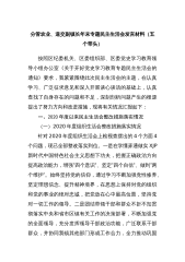 按照区委关于召开202X年度专题民主生活会的通知要求,我认真学习领会XJP新时代中国特色社会主义思想和党的十九届六中全会精神,聚焦民主生活会主题,按照“学史明理、学史增信、学史崇德、学史力行”和“学党史、悟思想、办实事、开新局”的目标要求,开展了谈心谈话、调研走访等活动,广泛征求镇街、部门及基层代表意见。在此基础上,深刻剖析自己在思想、政治、组织、作风、纪律等方面的问题,紧密结合思想和工作实际,严格对照会议方案明确5个方面查找自身存在的差距和不足,深入剖析问题根源、制定整改措施。现将对照检查情况汇报如下:一、对照检查查摆出来的问题(一)在带头深刻感悟“两个确立”的决定性意义,深刻感悟党坚持把...