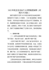 2022年民主组织生活会个人对照检查材料(对照六个方面 )