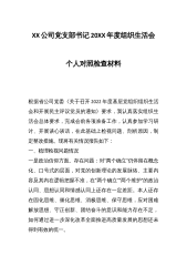 XX公司党支部书记20XX年度组织生活会个人对照检查材料