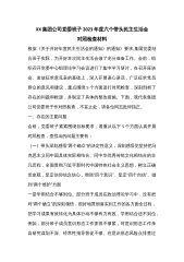 XX集团公司党委班子2023年度六个带头民主生活会对照检查材料