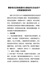 根据这次民主生活会要求,我紧紧围绕方案明确的五个方面内容,把学习教育、谈心谈话、征求意见、检视问题、整改落实贯穿始终,累计参加集中学习X天、组织谈心谈话X余人次,收集意见建议X条。通过学习,进一步坚定了理想信念、强化了党性修养、提振了担当精神。下面,分三个方面汇报。一、存在的主要问题按照这次民主生活会部署要求,结合前期开展的学习研讨、征求意见、谈心谈话等准备工作,深入检视自身问题如下:(一)对带头深刻感悟“两个确立”的决定性意义,深刻感悟党坚持把马克思主义同中国具体实际相结合、同中华优秀传统文化相结合的非凡历程,全面贯彻习近平新时代中国特色社会主义思想,树立正确党史观,坚定信仰信念信心,不断提...