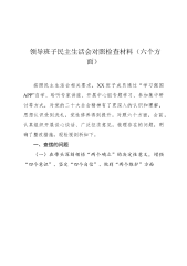 领导干部2021年年末专题民主生活会对照检查材料(五个带头)根据党史学习教育专题民主生活会的部署安排,坚持问题导向,通过个别交流、集中研讨,征求意见和谈心谈话等多种形式,广泛听取各方面意见和建议,深入查找本人在思想、政治、组织、作风、纪律上存在的差距和不足,进行认真查摆,现汇报如下:一、上年度民主生活会查摆问题整改情况针对2020年度民主生活会在五大方面查摆出的16条问题,我进行了认真分析和研究并立即整改:深入学习习近平新时代中国特色社会主义思想,每月至少参加一次区党工委理论中心组学习,一年至少参加12次支部党员大会及活动,认真记录学习笔记、撰写体会文章,提高政治觉悟、践行”四个意识”;克服依...