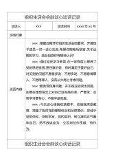 组织生活会会前谈心谈话记录谈话人xxx谈话时间xxxx年xx月谈话对象谈话内容xxx:根据近期开好组织生活会的要求,开展班子成员一对一谈心交流,希望你能畅所欲言,关于近期的学习,结合自身你有哪些认识?xxx:通过党史学习教育,在一定程度上提高了党的思想觉悟,责任意识差,有时满足于管好自己,对见到的问题不愿意多说,不想多说,不愿意得罪人,不想得罪人,没有从大局上考虑问题。xxx:能发现自身问题,并正视这些突出问题,还要在理想信念上对自己设有高标准、严要求,业务学习要专心,不能半途而废。xxx:今天谈心使我收获颇丰,也使我深受教育,增强了我对党的理想信念和纪律意识,忠诚于党的信仰、党的宗旨、党的组...