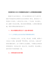 党支部书记2022年度组织生活会个人对照检查发言提纲(六个对照)