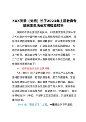 本文系邮箱投稿,仅供学习参考,请勿照搬照抄!彻底肃清腐败流毒影响,强化意识、筑牢防线主题民主生活会班子对照检查材料按照集团公司党委通知要求,公司党委班子紧紧围绕本次民主生活会的主题要求,积极组织政治学习,先后系统的学习了习近平新时代中国特色社会主义思想、《党章》《条例》《准则》等党内规章制度、《中共XX省委关于巡视整改进展情况的通报》以及上级领导在集团公司彻底肃清腐败流毒影响大会上的讲话等内容,并结合实际,通过谈心谈话、意见征求、班子成员自我剖析等方式,深度查摆问题、深刻反思教训,进一步明确了努力方向和整改措施。下面,我代表党委班子报告对照检查情况:一、存在的主要问题(一)讲政治方面。班子能够...