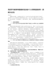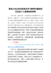 某电力央企党支部党史学习教育专题组织生活会个人检视剖析材料今年以来,通过自学、党委理论中心组集体学习、党委会第一议题学习、党史学习教育读书班和集团公司党史学习教育专题讲座视频学习等方式,围绕“学党史、悟思想、办实事、开新局”主题,本人认真学习习近平总书记在党史学习教育动员大会上的重要讲话、党中央指定的4本学习教材和习近平总书记在庆祝中国共产党成立100周年大会上的重要讲话等内容,取得了比较深刻的思想淬炼理论提升和实践成果。同时,在组织生活会前,按照有关要求,认真开展了谈心谈话,听取了党支部党员同志们的意见建议,认真查找不足,深刻剖析原因,制定整改措施现将个人检视剖析情况报告如下。一、学习情况(...