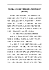 按照本次民主生活会的要求,我紧紧围绕会议主题,对规定的学习内容进行了深入学习、认真领会,通过学习领悟,更加坚定了历史自信,增进了团结统一,增强了斗争精神。通过广泛征求意见、深入谈心谈话,认真对照查找了自身存在的问题和不足,深刻剖析问题产生的根源,提出了努力方向和改进措施。现报告如下,敬请同志们批评指正,我将虚心接受,认真反思,及时整改。一、2020年度以来民主生活会整改措施落实情况xx年xx月,我由xx镇党政办干部提拔为镇党委委员、组织委员、宣传委员、党建办主任,在此前非班子成员,未参加2020年度民主生活会,无相关情况。在xx镇机关第一党支部2020年度组织生活会上,通过批评与自我批评,归纳...