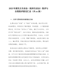 2025年民主生活会、组织生活会批评与自我批评意见汇总(四组共48条)