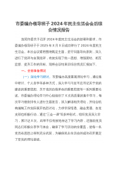党委书记在国有企业领导班子2024年民主生活会上的点评发言同志们:按照上级党委统一部署,今天我们召开了2024年度民主生活会。这次会议,主题鲜明、准备充分、程序规范,班子成员认真开展批评与自我批评,体现了对党忠诚、对事业负责的态度,达到了统一思想、凝聚共识、增进团结、促进工作的目的。下面,我代表公司党委,对本次民主生活会进行点评。一、会前准备扎实充分(一)组织学习深入全面。领导班子紧扣主题,深入开展学习研讨,通过集中学习与个人自学相结合的方式,认真学习领会习近平新时代中国特色社会主义思想,特别是习近平总书记关于国有企业改革发展和党的建设重要论述,跟进学习党的最新理论成果和重要会议精神。在学习习...