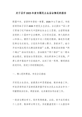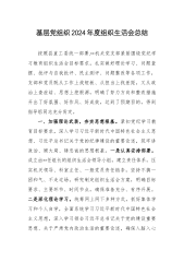 基层党组织2024年度组织生活会总结按照县直工委统一部署,**机关党支部紧紧围绕党纪学习教育组织生活会目标要求,扎实做好理论学习、问题查摆、批评与自我批评、民主测评、问题整改等各项工作,支部和党员既从工作上找短板、从担当上找差距,又从政治上查症结、思想上挖根源,明确了努力方向和整改措施开出了好氛围、好作风、好成效,达到了预期目的,得到指导组同志充分肯定。一、加强理论武装,夯实思想根基。紧扣党纪学习教育目标要求,深入学习习近平新时代中国特色社会主义思想、习近平总书记关于党的纪律建设的重要论述,筑牢讲政治、顾大局、铸忠诚的思想根基。一是认真安排部署。成立由**任组长的组织生活会领导小组,建立责任体...