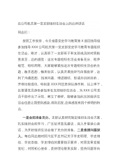 同志们:今天很高兴参加我们支部的组织生活会,刚才听了政府办党支部的半年工作总结,看得出来,做了不少事情,取得了不错成绩,望继续保持。稍后,还将分党小组召开专题组织生活会,希望大家本着“团结—批评—团结”的原则,本着对自己、对同志负责的公心,深刻剖析和开展批评与自我批评。借此机会,我就学习贯彻习近平总书记“七一”重要讲话精神,推动党史学习教育走深走实,做好政府办工作,有几个观点跟大家分享。一、奋进新征程,坚持党的全面领导不动摇“办好中国的事情,关键在党。”在庆祝中国共产党成立100周年大会上,习近平总书记深情回顾我们党百年奋斗的光辉历程,着眼实现中华民族伟大复兴的中国梦,明确提出以史为鉴、开创未...
