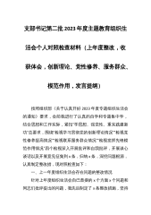 支部书记第二批2023年度主题教育组织生活会个人对照检查材料(上年度整改,收获体会,创新理论、党性修养、服务群众、模范作用,发言提纲)
